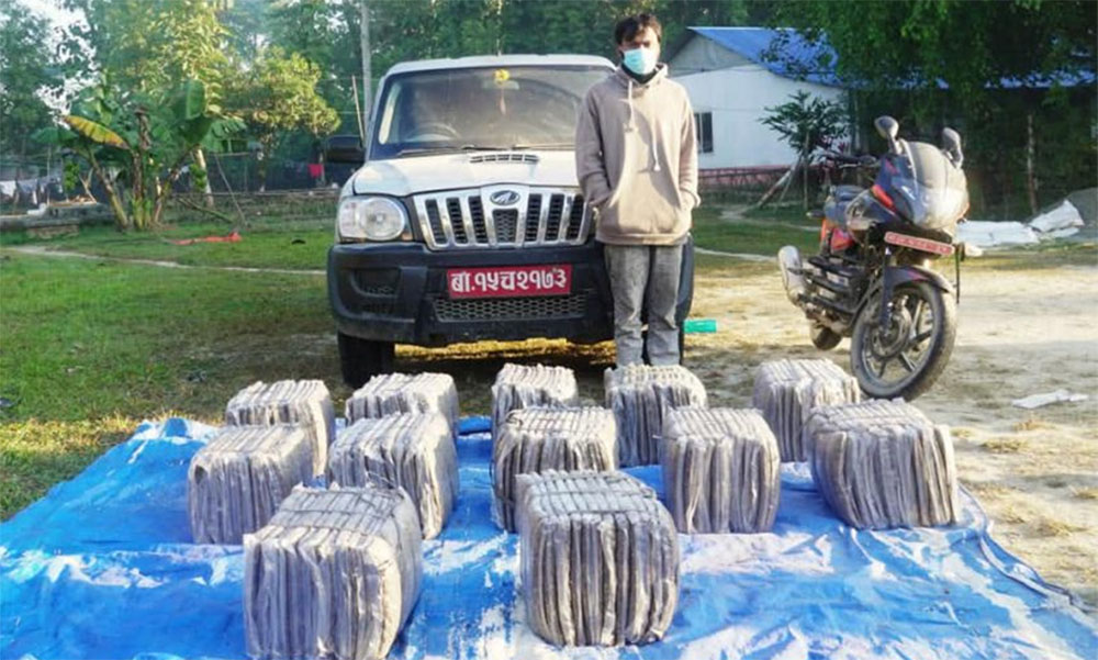 सशस्त्र प्रहरीले बिहीबार बिहान इनरुवा नगरपालिका–७ चाँदवेलाबाट एक क्विन्टल ५३ किलो गाँजासहित २० वर्षीय आदित्य चौधरीलाई नियन्त्रणमा लिएको हो ।