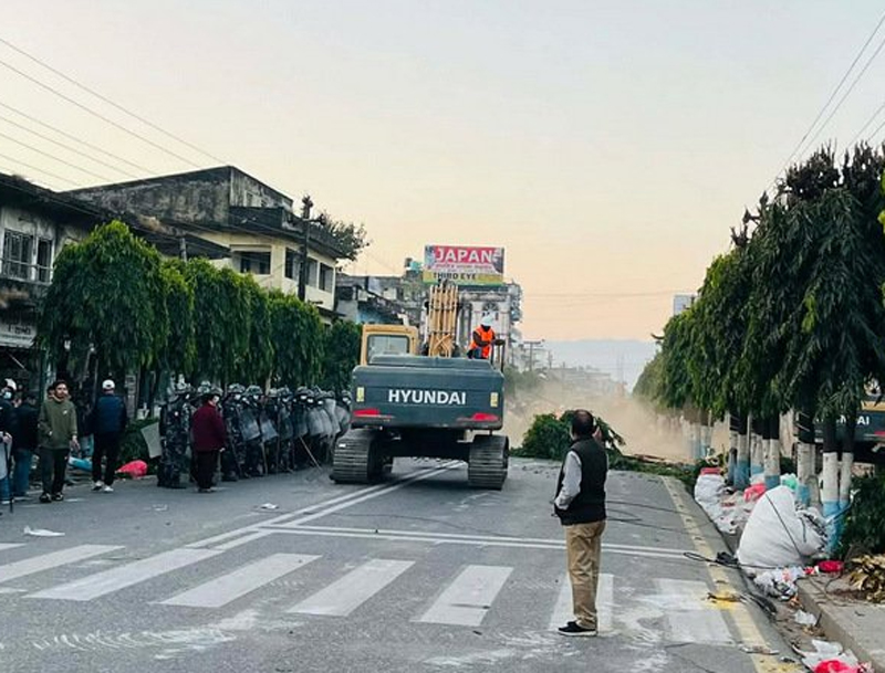 काठमाडौं । हेटौँडा उपमहानगरपालिका क्षेत्रभित्र पर्ने राष्ट्रिय राजमार्गको सडक सीमा केन्द्र रेखादेखि २५–२५ गजभित्र बनेका स्थायी तथा अस्थायी प्रकृतिका घरटहरा हटाउन थालिएको छ । १५ दिनको अल्टिमेटम शुक्रबार सकिएसँगै आज बिहान ५ बजे देखि घरटहरा हटाउन डोजर चलाइएको हो ।