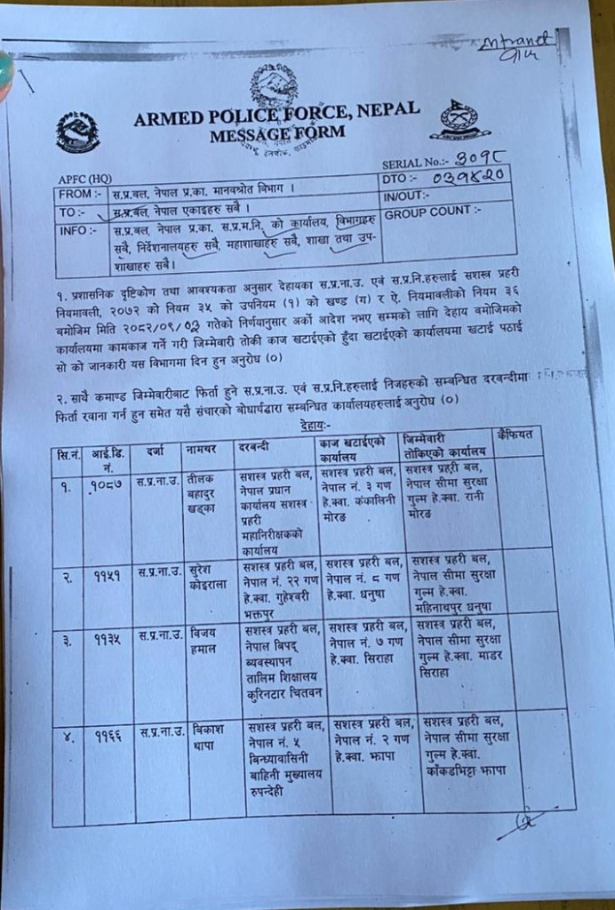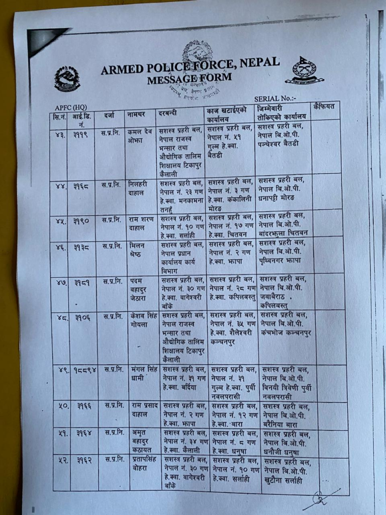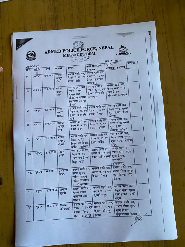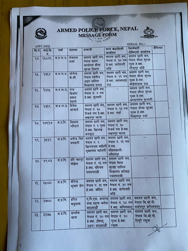 सशस्त्र मुख्यालयले प्रशासनिक दृष्टिकोण तथा आवश्यकता भन्दै उनीहरूको काज सरुवा गरेको हो ।