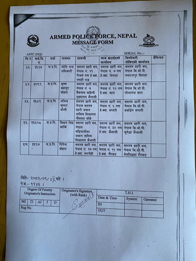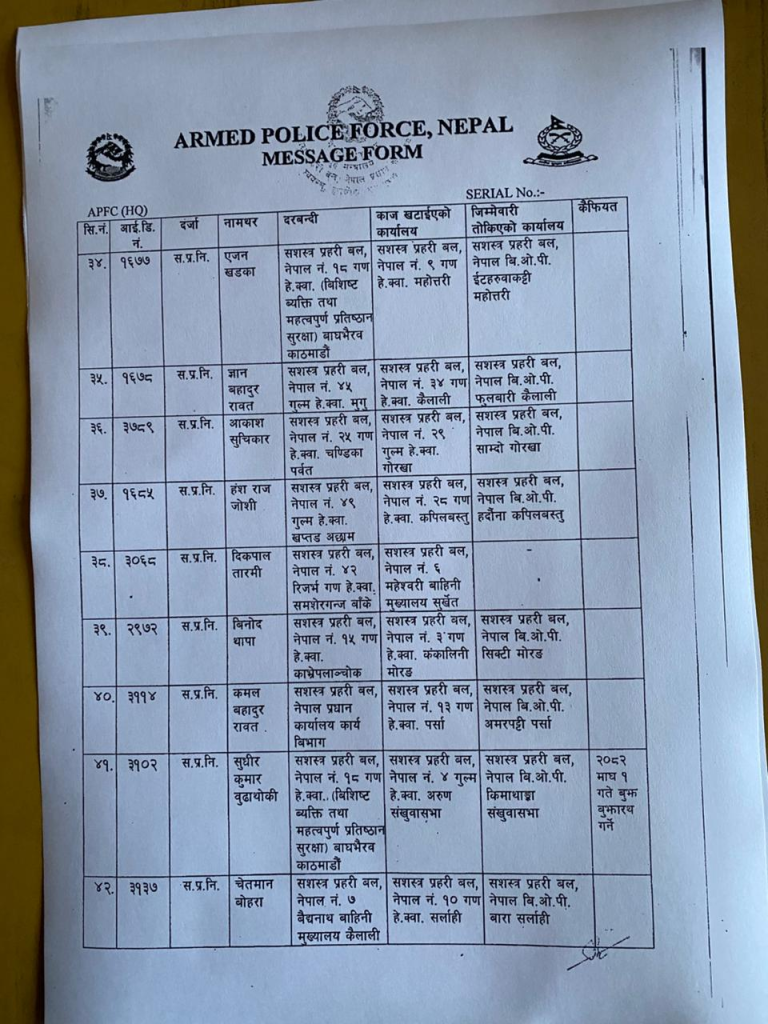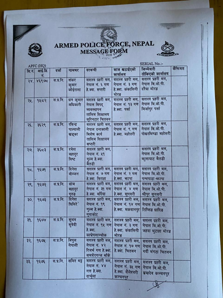 सशस्त्रका १७ डिएसपी र ४० इन्स्पेक्टरको काज सरूवा, को-कहाँ पुगे ? (सूचीसहित)