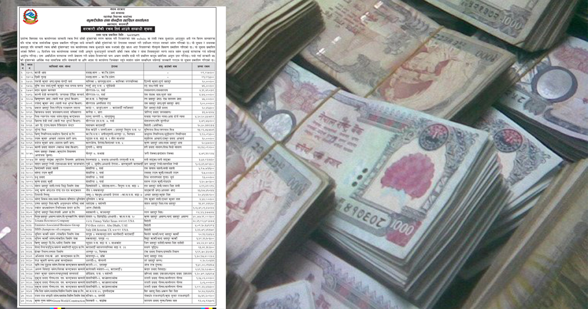 ५२ जनाले सरकारलाई १ अर्ब ९१ करोड ७७ लाख २६ हजार १७१ रूपैयाँ तिरेका छैनन्।