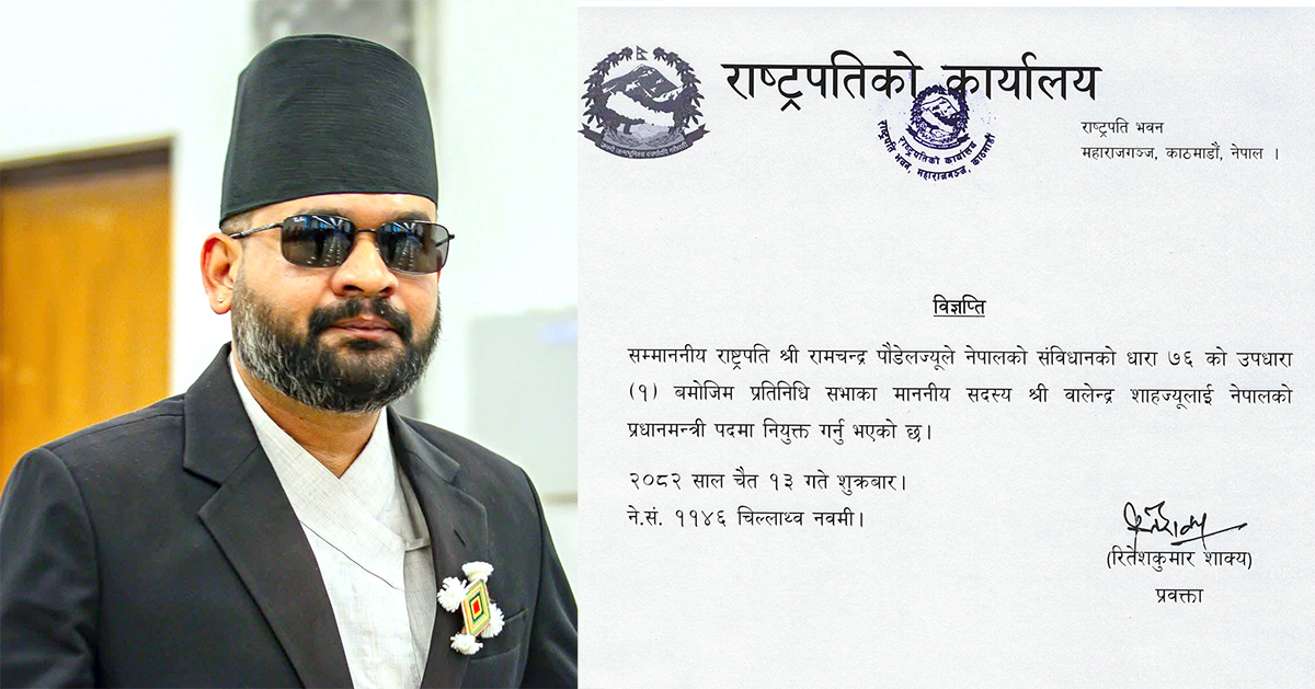 बालेन शाह प्रधानमन्त्रीमा नियुक्त